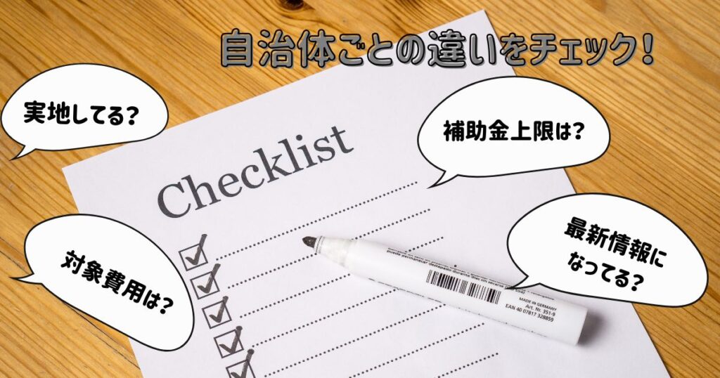 補助の対象範囲や上限額は、居住する市区町村によって異なるため、必ず自治体の公式情報を確認しましょう。