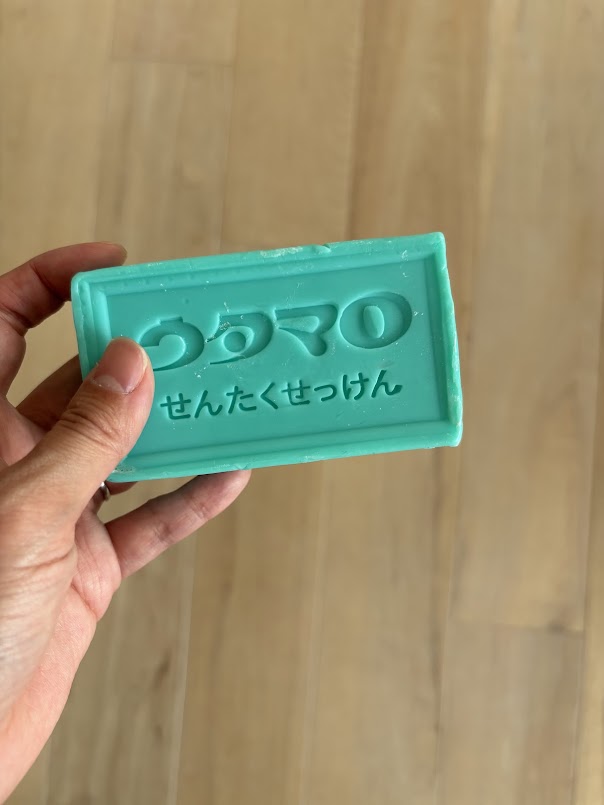 - 緑色の固形石けんで、皮脂や食べこぼし汚れに強い