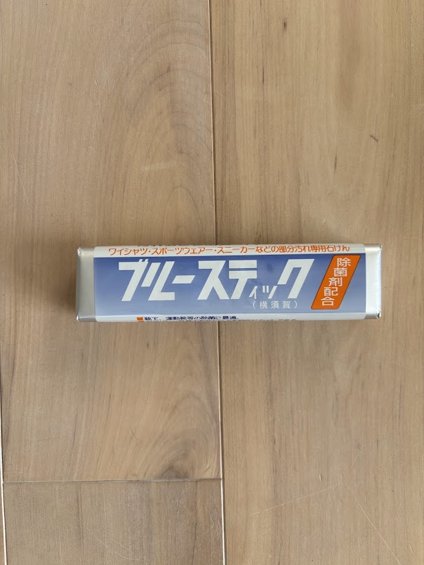 ブルースティックは、衣類の部分汚れを落とすために使われる、スティック状の固形洗濯石けんです。ワイシャツの襟・袖の黒ずみや、スポーツウェア・スニーカーの泥汚れ、赤ちゃんのうんちや食べこぼしまで幅広く対応できるのが特徴です。
