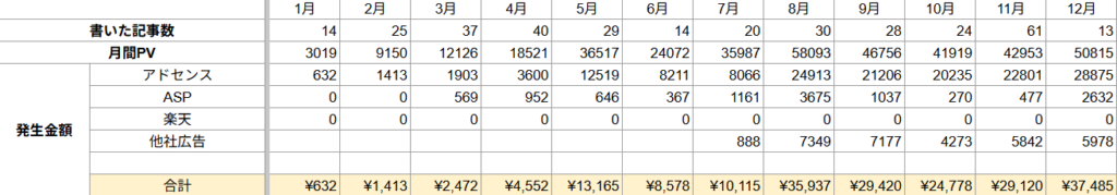 これだけの記事数を書くのは大変でしたが、どんなテーマが検索されるのかを見極められず量に頼る作戦に出ました。そのかわり、12月の執筆は押さえて体力面でバランスを取りました。