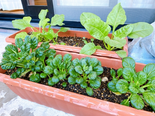 外側の葉から順に少しずつ摘み取れば、中央から次々に新しい葉が出てくるのが特徴です。全体を一度に収穫せず、「少しずつ育てながら食べる」スタイルにすると長期間楽しめますよ。