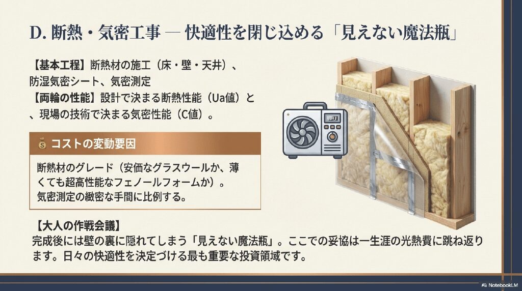 - D. 断熱・気密工事 ー 快適性を閉じ込める「見えない魔法瓶」