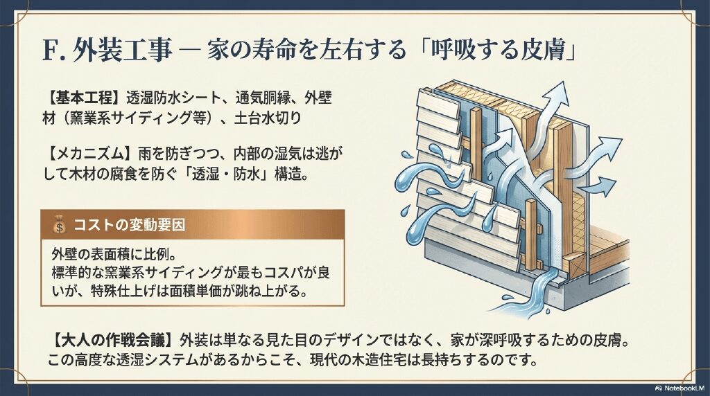 - F. 外装工事 ー 家の寿命を左右する「呼吸する皮膚」
