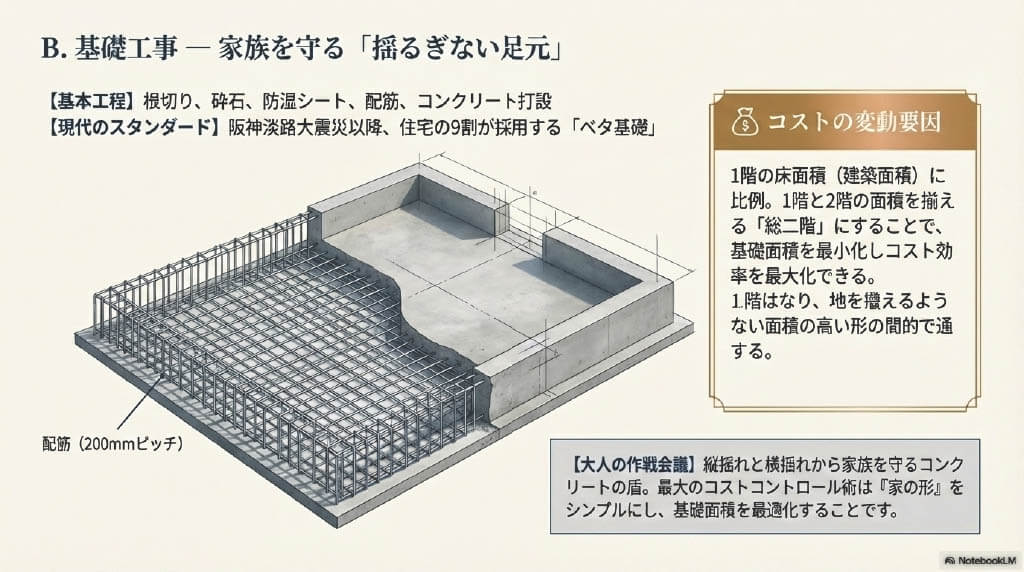 - B. 基礎工事 ー 家族を守る「揺るぎない足元」