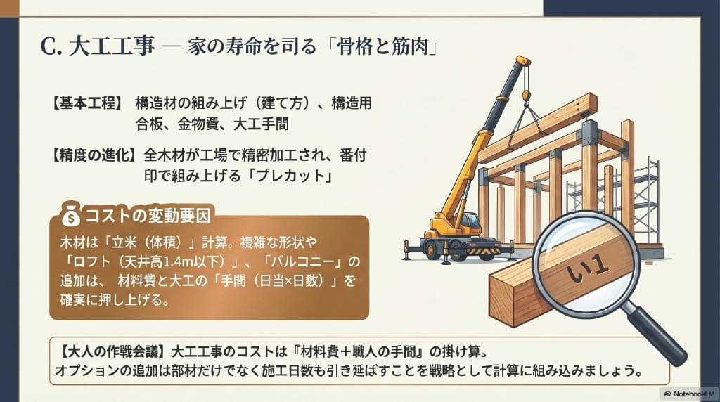 - C. 大工工事 ー 家の寿命を司る「骨格と筋肉」
